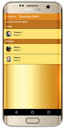 Questa sezione è collegata alla “carta fedeltà” spiegata qui CARTA FEDELTA’… in pratica si può gestire una vera e propria gara tra i nostri clienti per rendere ancora più motivante “consumare” nel nostro locale… per la gara bisogna stabilire un premio e la durata (1 settimana o 1 mese)… partecipano tutti gli utenti registrati alla APP…