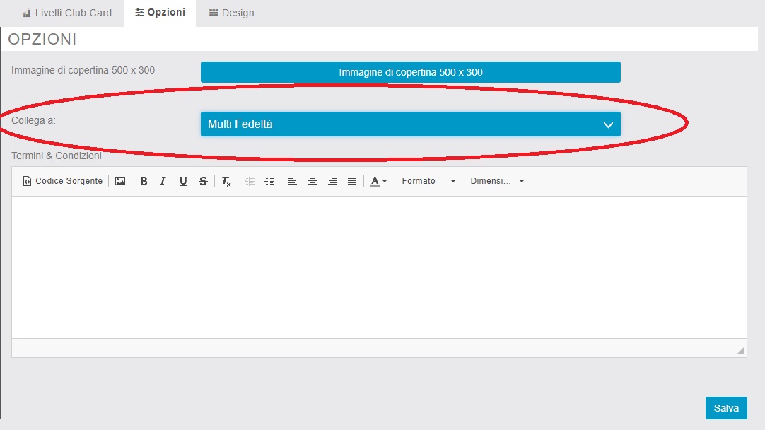 Si può anche utilizzare il box dedicato ai Termini & Condizioni per inserire un proprio testo legato alle politiche della Club Card.
