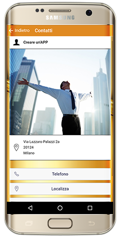 Fornire ai propri utenti i nostri contatti può essere utile… ad esempio, il possessore della APP che vuole telefonare al nostro ufficio o locale deve solo aprire la APP, cliccare sulla voce del telefono in questa sezione e automaticamente partirà la telefonata… servizio fidelizzante per chi ci contatta spesso in vari modi.