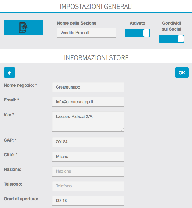 1 – Prima di tutto è necessario impostare le informazioni del Negozio.