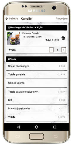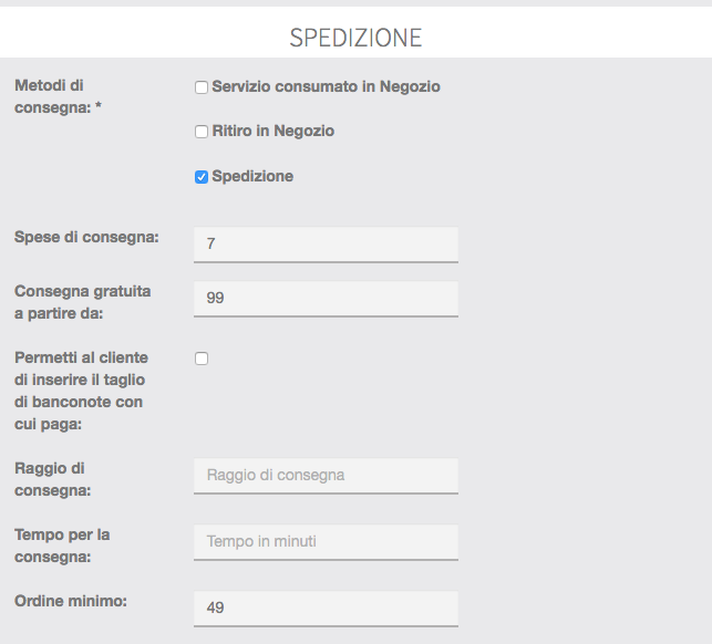 Sono possibili 3 metodi di consegna: “Servizio consumato in negozio” che si riferisce ad acquisti fatti sulla APP ma i prodotti verranno poi consumati nel locale (esempio ristorante che propone menu o piatti da prenotare)… “Ritiro in Negozio”, la merce viene ordinata e pagata online ma il ritiro fisico avviene nel punto vendita… “Spedizione”, tipico e-commerce… prodotto ordinato e consegnato a casa (per il ristorante può valere il concetto di JustEat).