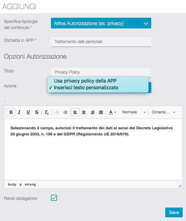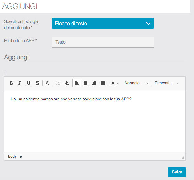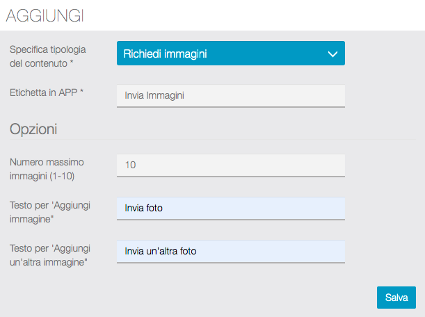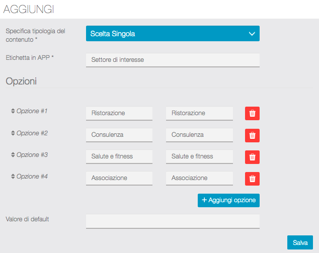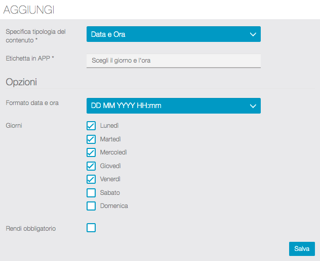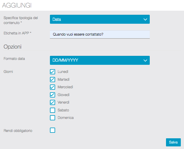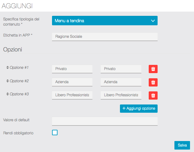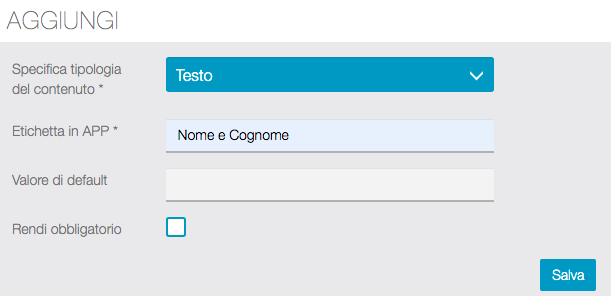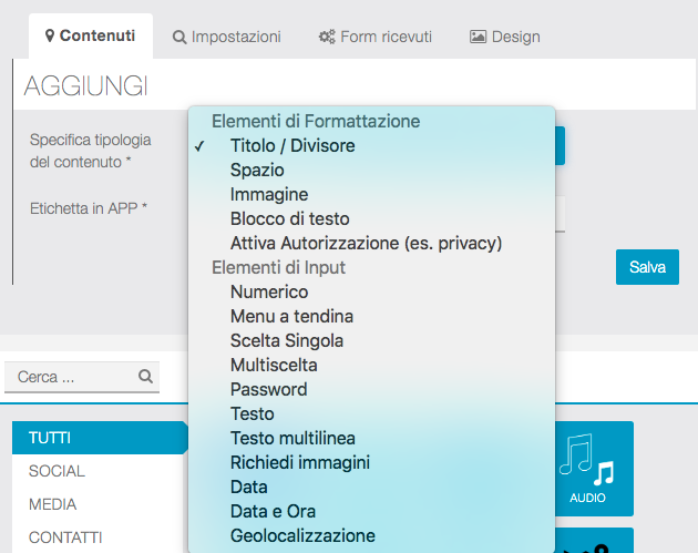 Vediamo come creare i contenuti del form che gli utenti compileranno direttamente dalla APP.