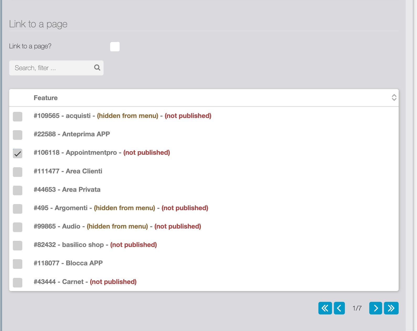 La voce Link to a page? , se selezionata, permette di collegare la notifica a una sezione specifica dell’APP. In questo modo, quando un utente clicca sulla notifica, l’APP verrà aperta in automatico sulla sezione collegata, scelta dall’elenco delle sezioni presenti in APP.