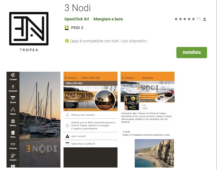 L’app 3 Nodi nasce per fornire servizi ai clienti del nostro ristorante. Prenotare con facilità, ricevi informazioni sugli eventi e le promozioni speciali riservate ai nostri clienti, leggi il nostro menù con le novità e le proposte del giorno, consultare la mappa per raggiungerci con facilità, guarda i video e le foto del ristorante, e condividili con i tuoi amici, partecipa ai nostri programmi di fidelizzazione e molto altro ancora