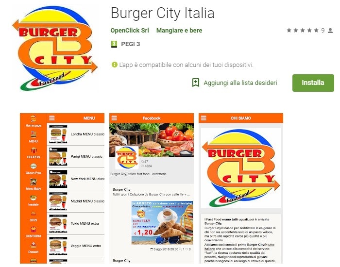 App del ristorante Burger City Italia – Italian Fast Food Caffetteria.