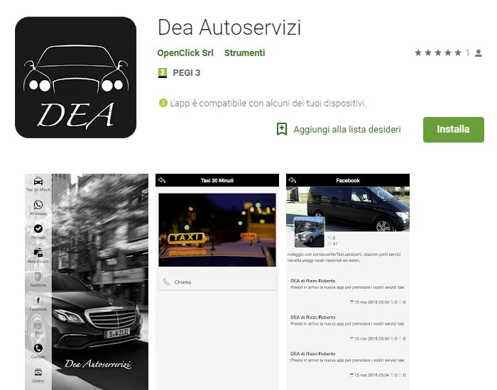 Agevola la ricerca di un Taxi o di un NCC Scarica la app su Play Store Clicca e guarda la app sul telefonino o tablet Categorie Merceologiche Cerca app per funzioniE-commerce in app Prenotazione Area privata Carta Fedeltà Collegamento ad e-commerce Coupon sconto Inquadra il QR code con un QR code Reader e scarica la APP