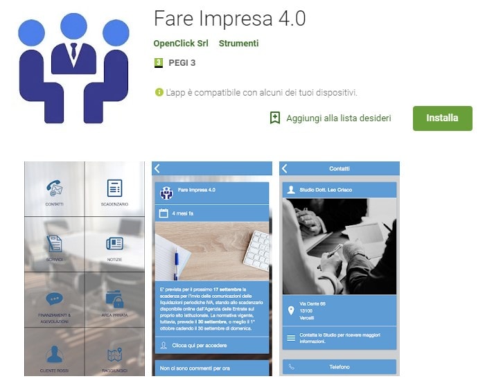L’App FARE IMPRESA 4.0, totalmente gratuita, si pone l’obiettivo di supportare l’imprenditore/amministratore nella gestione aziendale fornendo notizie utili sulla possibilità di finanza agevolata fondamentale per la Business Strategies nonché una serie di servizi utili per l’aggiornamento continuo sui vari adempimenti fiscali.