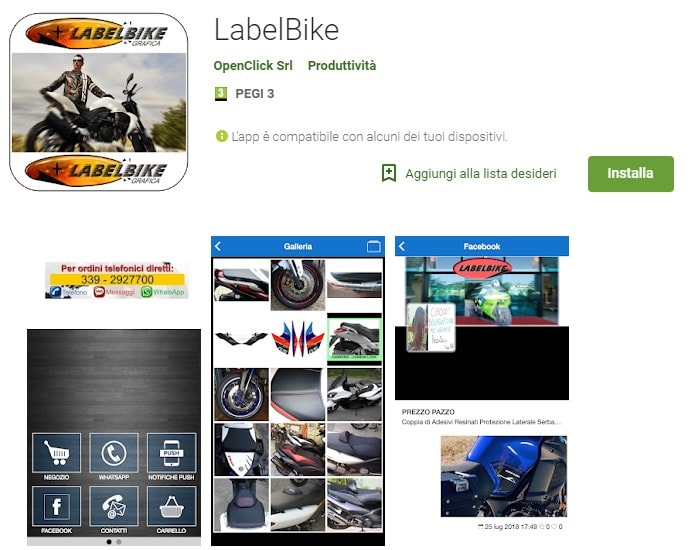 Scarica Subito la App LabelBike per Acquistare in tranquillità e Sicurezza gli Adesivi Resinati di Protezione per la tua Moto. L’esclusivo Design migliorerà l’estetica della tua moto e la proteggerà nel tempo dagli inevitabili graffi. 9 anni di vendita on Line degli adesivi LabelBike fanno questa azienda la più grossa produttrice e venditrice di Adesivi Resinati per moto in tutto il mondo. Tutti gli Ordini vengono evasi entro 24/48 ore lavorative – 30 giorni di tempo per ripensarci –