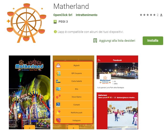 L’applicazione ufficiale del luna park Matherland ti accompagnerà durante la tua visita, per supportarti con informazioni e notizie utili. Troverai la geolocalizzazione per condurti da noi in qualsiasi luogo ci possiamo trovare. A portata di un click, potrai visionare le informazioni su tutte le nostre attrazioni; inoltre riceverai notifiche per essere sempre aggiornato su tutto quello che riguarda il parco di divertimenti e su tutte le iniziative che verranno effettuate: promozioni ,sconti , giornate speciali e tanto altro ancora per non perderti nulla del fantastico mondo di MATHERLAND!
