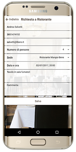 Esiste una sezione che permette di prenotare direttamente un tavolo in un Ristorante PRENOTAZIONE TAVOLO. In questa sezione invece si ha possibilità di gestire “richieste di prenotazione”, cioè il cliente, attraverso l’APP, richiede un tavolo per una determinata data e ora e il ristoratore risponde confermando o meno… la prenotazione sarà inviata via mail.