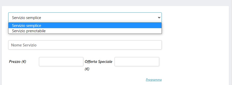 Nel campo Nome Servizio va inserito il titolo del servizio, il nome di quello che si sta impostando. L’esempio sotto riguarda un nuovo servizio di un parrucchiere.